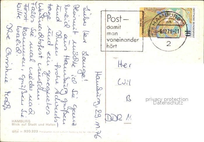 72267738 alte Postkarte HAMBURG CITY Fliegeraufnahme Hafen postalisch gelaufen Erhaltung siehe scans KatCode: 11110002000000