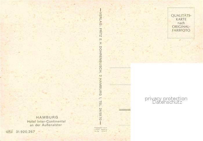 72892581 HAMBURG CITY Fliegeraufnahme Hotel Inter Continental Aussenalster postalisch nicht gelaufen Erhaltung siehe scans [AndreD76] KatCode: 11110002000000