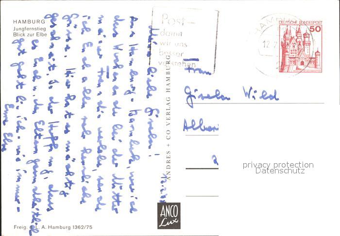 72289886 alte Postkarte HAMBURG CITY Fliegeraufnahme Jungfernstieg postalisch gelaufen Erhaltung siehe scans KatCode: 11110002000000