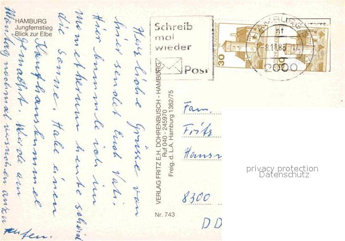 72818298 alte Postkarte HAMBURG CITY Fliegeraufnahme Jungfernstieg mit Elbe postalisch gelaufen Erhaltung siehe scans [LiesaD40] KatCode: 11110002000000