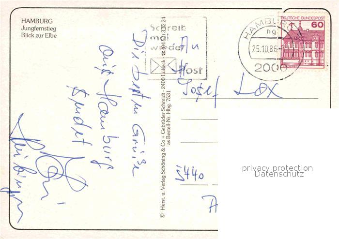 72927292 alte Postkarte HAMBURG CITY Fliegeraufnahme Jungfernstieg postalisch gelaufen Erhaltung siehe scans [KathaD81] KatCode: 11110002000000