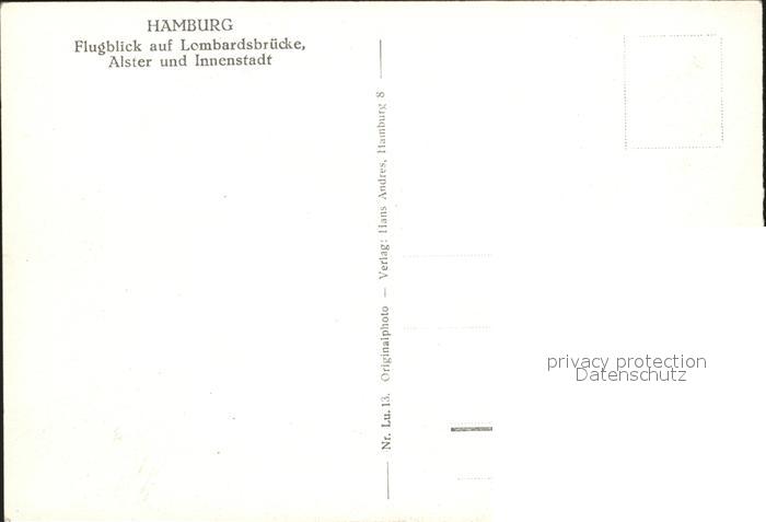72132096 HAMBURG CITY Fliegeraufnahme Lombardsbruecke Alster postalisch nicht gelaufen Erhaltung siehe scans KatCode: 11110002000000