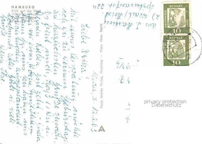 72758075 alte Postkarte HAMBURG CITY Fliegeraufnahme mit Kirche postalisch gelaufen Erhaltung siehe scans [LiesaD40] KatCode: 11110002000000
