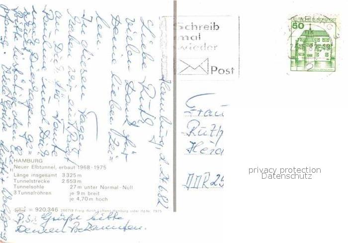 72714378 alte Postkarte HAMBURG CITY Fliegeraufnahme Neuer Elbtunnel postalisch gelaufen Erhaltung siehe scans [LiesaD40] KatCode: 11110002000000