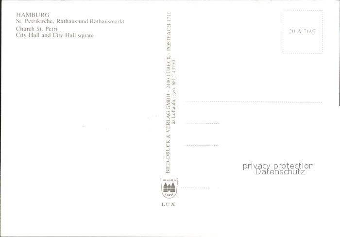 72255624 HAMBURG CITY Fliegeraufnahme Rathaus und Markt Petrikirche postalisch nicht gelaufen Erhaltung siehe scans KatCode: 11110002000000