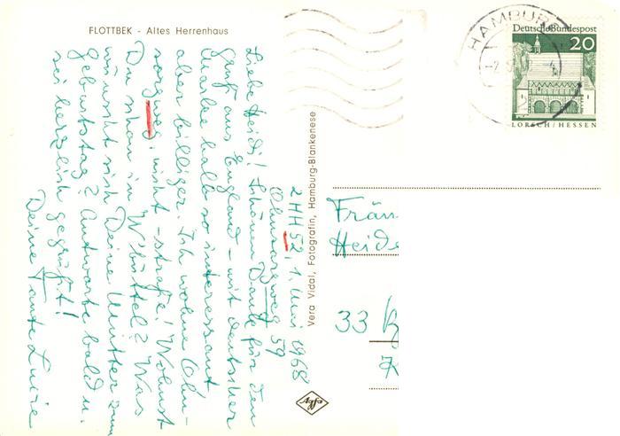 73889267 HAMBURG CITY Flottbek Altes Herrenhaus postalisch gelaufen Erhaltung siehe scans [WerneD78] alte Postkarte Wern Katcode 11110002000000