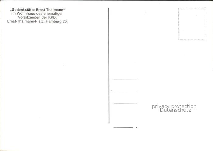 72581890 HAMBURG CITY Gedenkstaette Ernst Thaelmann postalisch nicht gelaufen Erhaltung siehe scans [LiesaD40] KatCode: 11110002000000
