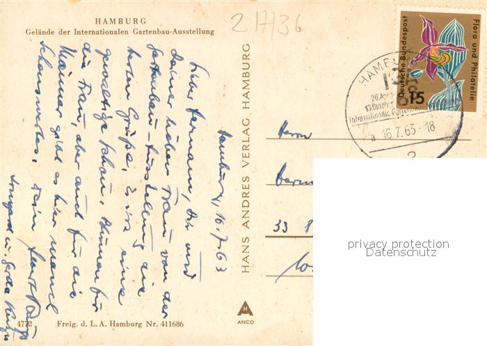 73718714 HAMBURG CITY Gelaende der Internationalen Gartenbau Ausstellung Fliegeraufnahme postalisch gelaufen Erhaltung siehe scans [WerneD78] alte Postkarte Wern Katcode 11110002000000