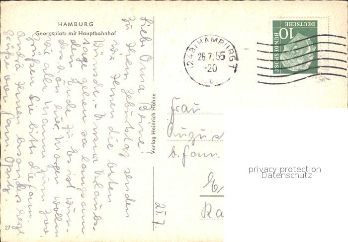 72078527 alte Postkarte HAMBURG CITY Georgsplatz Hauptbahnhof postalisch gelaufen Erhaltung siehe scans KatCode: 11110002000000