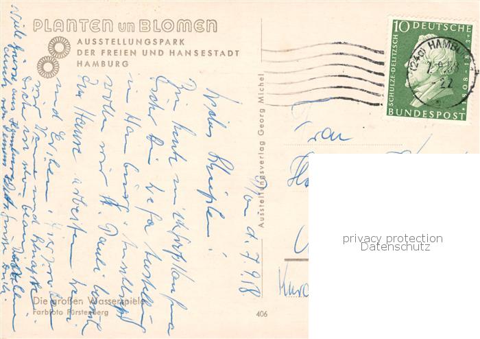 73859505 HAMBURG CITY Grossen Wasserspiele Planten en Blomen Ausstellungspark postalisch gelaufen Erhaltung siehe scans [FriedD77] alte Postkarte Frie Katcode 11110002000000