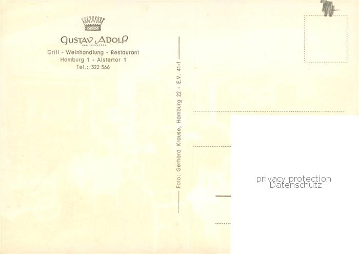73764308 HAMBURG CITY Gustav Adolf Restaurant postalisch nicht gelaufen Erhaltung siehe scans [FriedD77] Frie Katcode 11110002000000