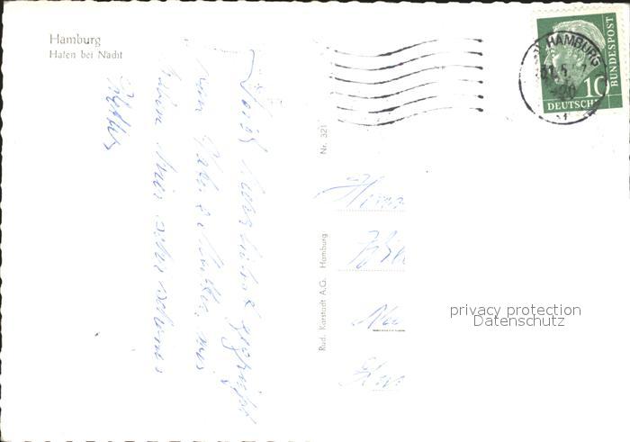 72231285 alte Postkarte HAMBURG CITY Hafen bei Nacht postalisch gelaufen Erhaltung siehe scans KatCode: 11110002000000