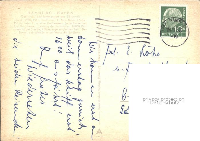 72447345 alte Postkarte HAMBURG CITY Hafen Elbtunnel postalisch gelaufen Erhaltung siehe scans KatCode: 11110002000000