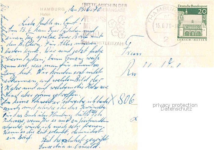 72631471 alte Postkarte HAMBURG CITY Hafen Fliegeraufnahme postalisch gelaufen Erhaltung siehe scans [LiesaD40] KatCode: 11110002000000