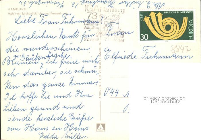 72158249 alte Postkarte HAMBURG CITY Hafen Michaeliskirche Fernsehturm postalisch gelaufen Erhaltung siehe scans KatCode: 11110002000000