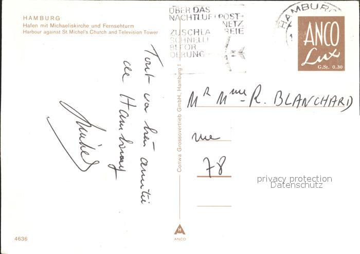 72285345 alte Postkarte HAMBURG CITY Hafen Michaeliskirche Fernsehturm postalisch gelaufen Erhaltung siehe scans KatCode: 11110002000000