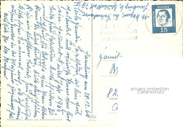 72406918 alte Postkarte HAMBURG CITY Hafen Michaeliskirche Fischkutter postalisch gelaufen Erhaltung siehe scans KatCode: 11110002000000