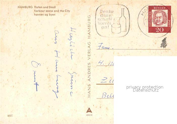 72751725 alte Postkarte HAMBURG CITY Hafen und Stadt Fliegeraufnahme postalisch gelaufen Erhaltung siehe scans [FriedD77] KatCode: 11110002000000