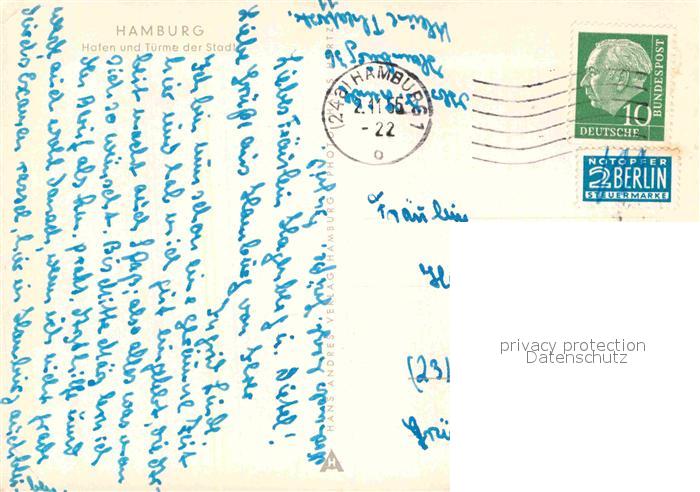 72886479 alte Postkarte HAMBURG CITY Hafen und Tuerme der Stadt postalisch gelaufen Erhaltung siehe scans [FriedD77] KatCode: 11110002000000