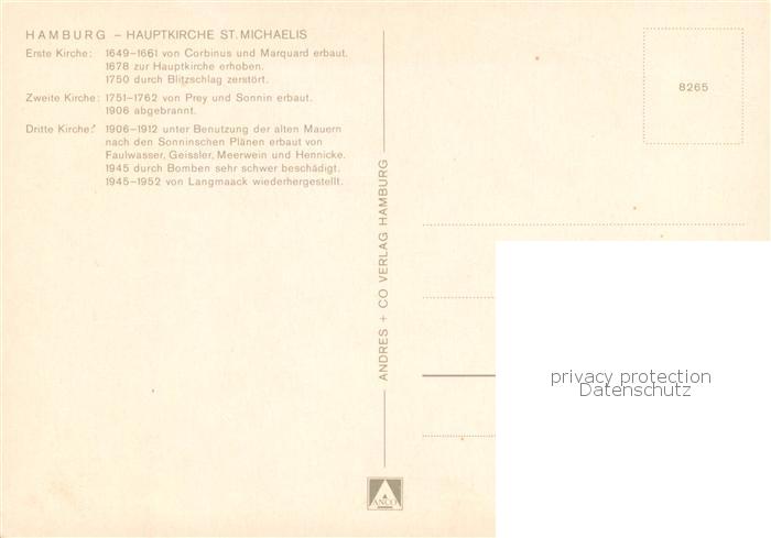 73754747 HAMBURG CITY Hauptkirche St Michaelis Fliegeraufnahme postalisch nicht gelaufen Erhaltung siehe scans [WerneD78] Wern Katcode 11110002000000