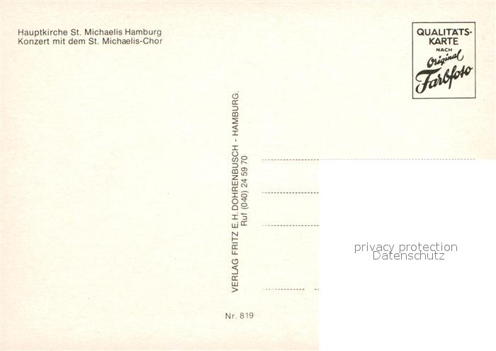 72959890 HAMBURG CITY Hauptkirche St Michaelis Hamburg Konzert postalisch nicht gelaufen Erhaltung siehe scans [WerneD78] KatCode: 11110002000000