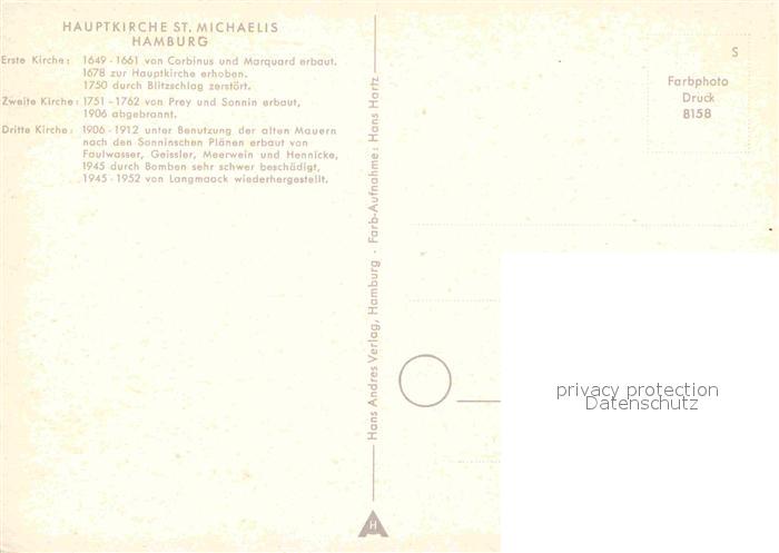 72836010 HAMBURG CITY Hauptkirche St. Michaelis postalisch nicht gelaufen Erhaltung siehe scans [PaolaD17] KatCode: 11110002000000