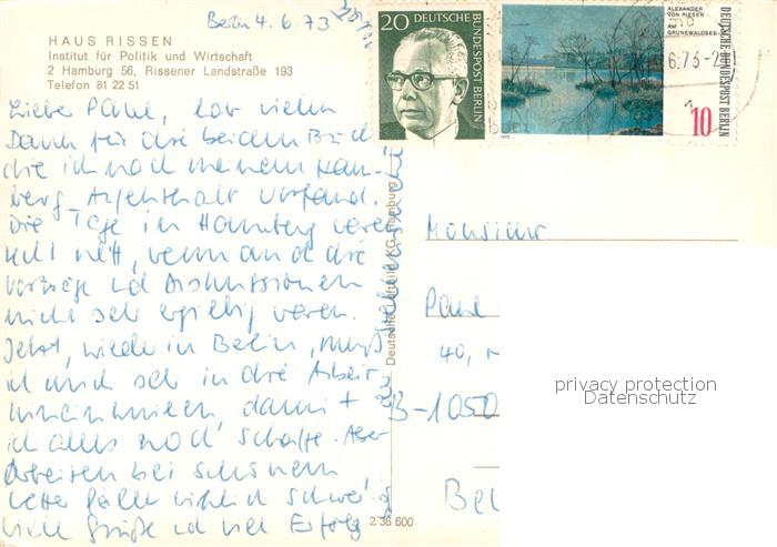 73768274 HAMBURG CITY Haus Rissen Institut Fliegeraufnahme postalisch gelaufen Erhaltung siehe scans [WerneD78] alte Postkarte Wern Katcode 11110002000000