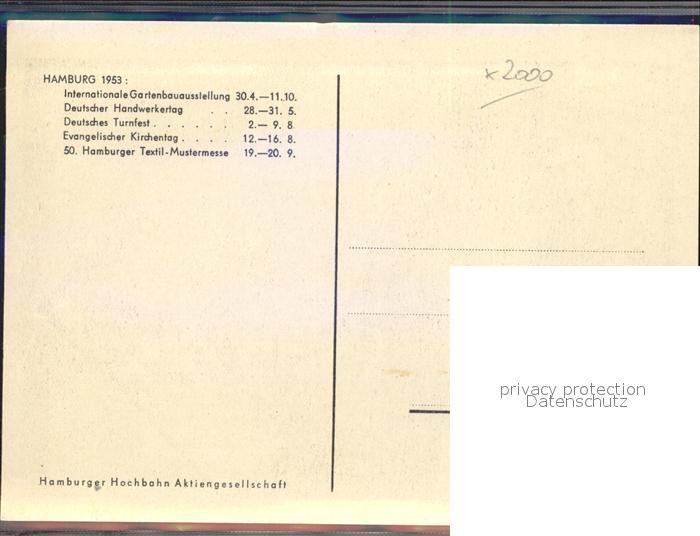 42061042 HAMBURG CITY Hochbahn postalisch nicht gelaufen Handschriftliches Kuerzel auf Karte Erhaltung siehe scans Handschriftliches Kuerzel auf Karte Matt Katcode 11110002000000