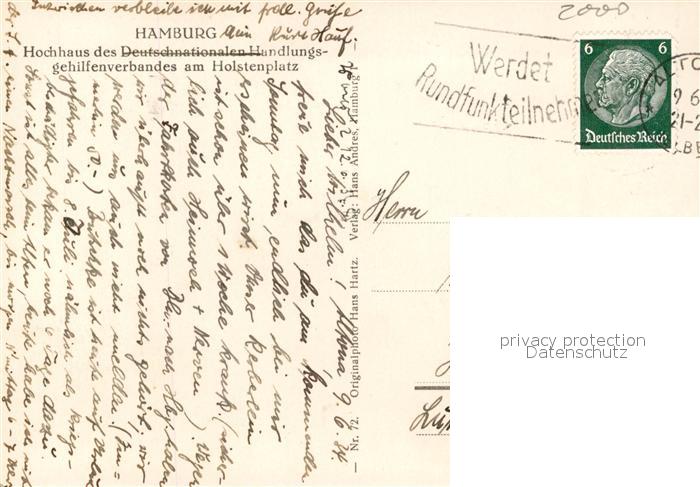 43499342 HAMBURG CITY Hochhaus am Holstenplatz postalisch gelaufen Erhaltung siehe scans [LiesaD40] alte Postkarte Lies Katcode 11110002000000