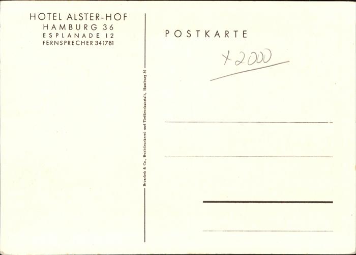 41207447 HAMBURG CITY Hotel Alster-Hof Restaurant postalisch nicht gelaufen gute Erhaltung Alte Ansichtskarte Postkarte hz_C Katcode 11110002000000