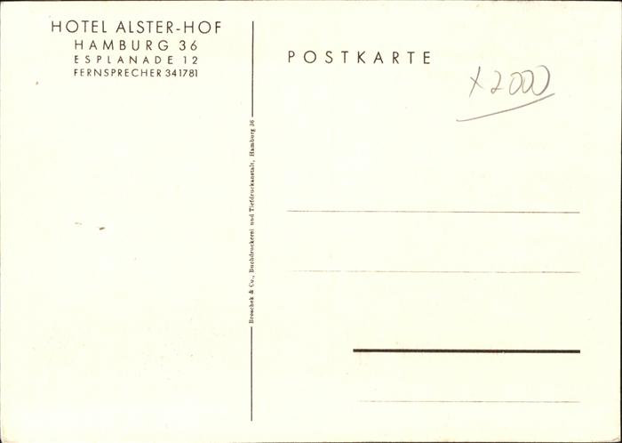41207445 HAMBURG CITY Hotel Alster-Hof postalisch nicht gelaufen gute Erhaltung Alte Ansichtskarte Postkarte hz_C Katcode 11110002000000