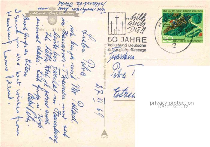 72822121 alte Postkarte HAMBURG CITY Hotel Atlantic postalisch gelaufen Erhaltung siehe scans [LiesaD40] KatCode: 11110002000000