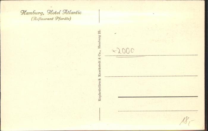 41055310 HAMBURG CITY Hotel Atlantik postalisch nicht gelaufen Alte Ansichtskarte Postkarte Ulri Katcode 11110002000000