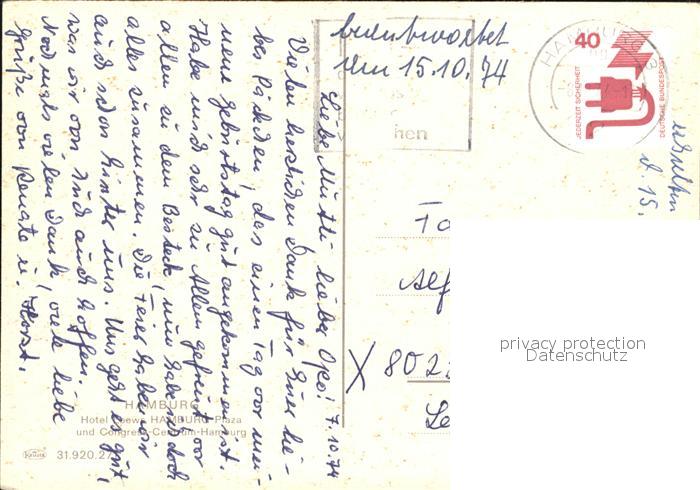 72505508 alte Postkarte HAMBURG CITY Hotel Congresszentrum postalisch gelaufen Erhaltung siehe scans KatCode: 11110002000000