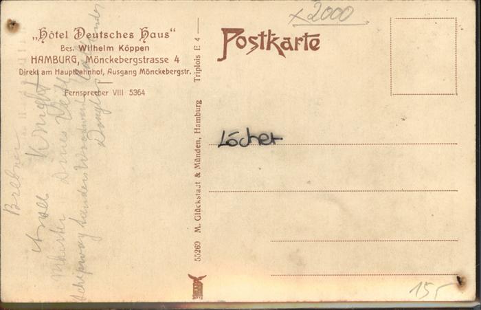 41056274 HAMBURG CITY Hotel Deutsches Haus postalisch nicht gelaufen Alte Ansichtskarte Postkarte Elvi Katcode 11110002000000