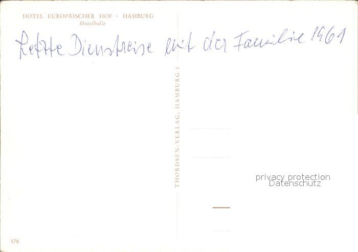 72095931 HAMBURG CITY Hotel Europaeischer Hof postalisch nicht gelaufen Erhaltung siehe scans KatCode: 11110002000000