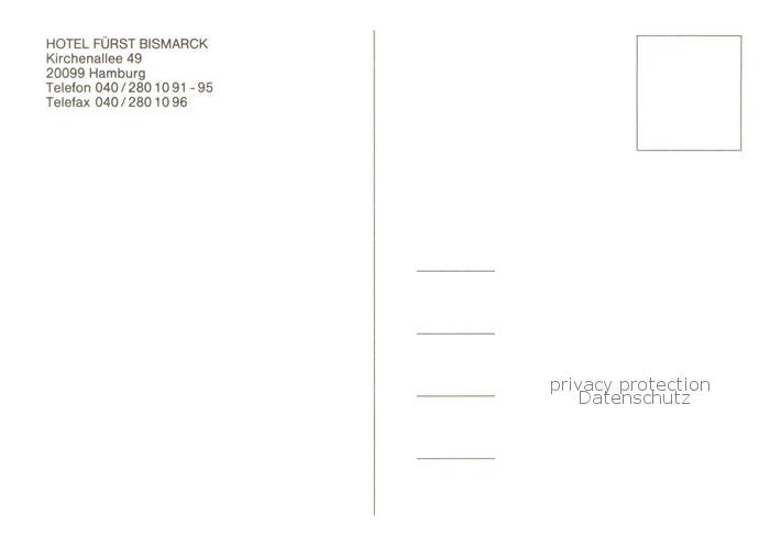 73859549 HAMBURG CITY Hotel Fuerst Bismarck postalisch nicht gelaufen Erhaltung siehe scans [FriedD77] Frie Katcode 11110002000000