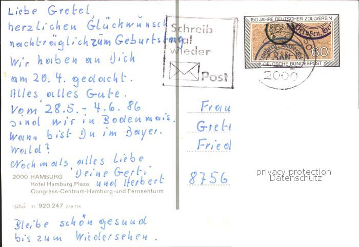 71976478 alte Postkarte HAMBURG CITY Hotel Hamburg Plaza Congress Zentrum Fernsehturm postalisch gelaufen Erhaltung siehe scans KatCode: 11110002000000