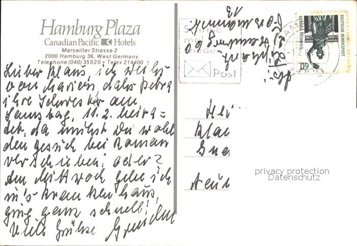 72537694 alte Postkarte HAMBURG CITY Hotel Plaza postalisch gelaufen Erhaltung siehe scans [AndreD76 kt119box] KatCode: 11110002000000