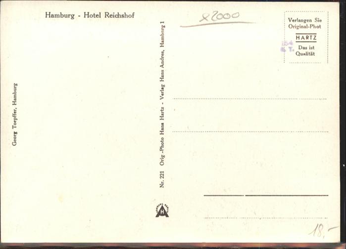 41055466 HAMBURG CITY Hotel Reichshof postalisch nicht gelaufen Alte Ansichtskarte Postkarte Ulri Katcode 11110002000000