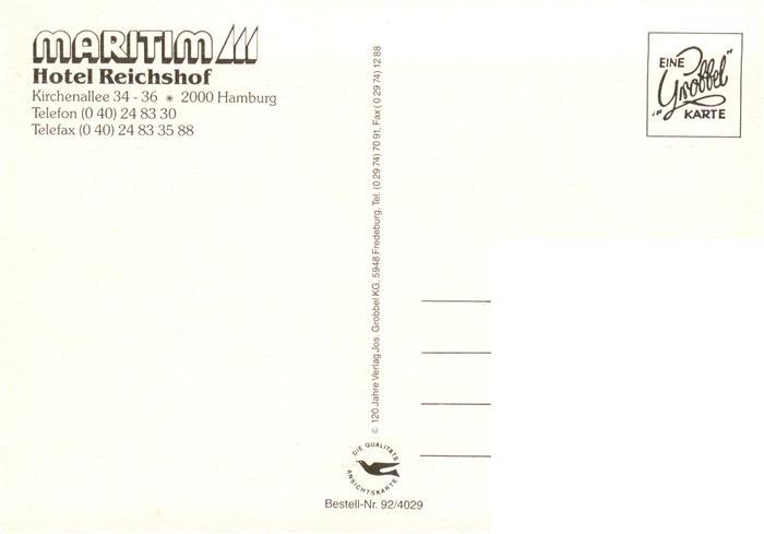 73882181 HAMBURG CITY Hotel Reichshof Maritim postalisch nicht gelaufen Erhaltung siehe scans [WerneD78] Wern Katcode 11110002000000