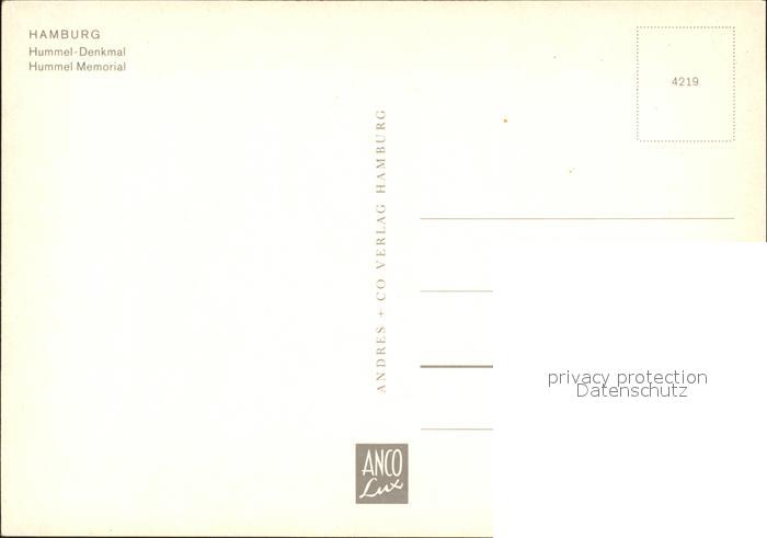 72114484 HAMBURG CITY Hummel Denkmal postalisch nicht gelaufen Erhaltung siehe scans KatCode: 11110002000000