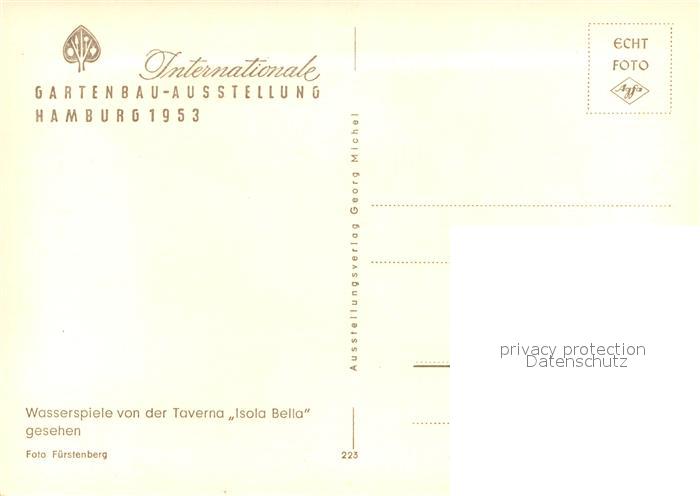 72938256 HAMBURG CITY Internationale Gartenbau Ausstellung Wasserspiele Taverna Isola Bella postalisch nicht gelaufen Erhaltung siehe scans [FriedD77] KatCode: 11110002000000