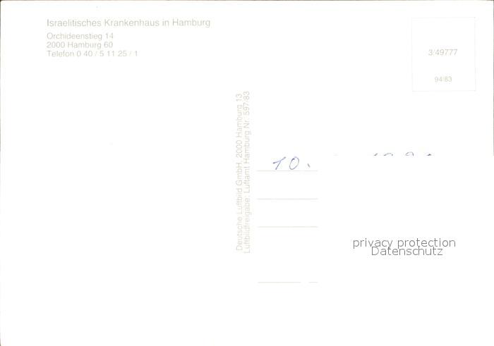72335184 HAMBURG CITY Israelitisches Krankenhaus Fliegeraufnahme postalisch nicht gelaufen Erhaltung siehe scans KatCode: 11110002000000