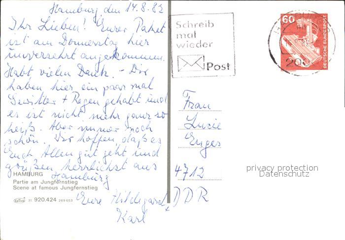 72434693 alte Postkarte HAMBURG CITY Jungfernstieg postalisch gelaufen Erhaltung siehe scans KatCode: 11110002000000