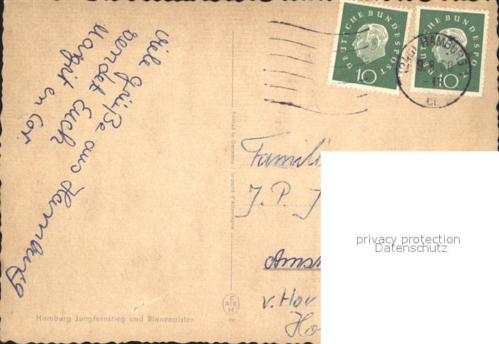 72273027 alte Postkarte HAMBURG CITY Jungfernstieg Binnenalster postalisch gelaufen Erhaltung siehe scans KatCode: 11110002000000