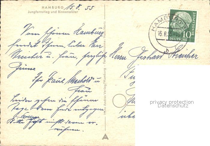 72455123 alte Postkarte HAMBURG CITY Jungfernstieg Binnenalster postalisch gelaufen Erhaltung siehe scans KatCode: 11110002000000