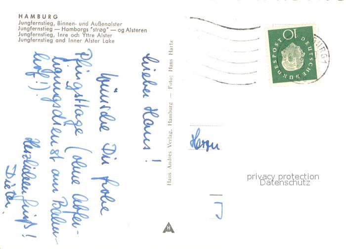 73744894 HAMBURG CITY Jungfernstieg mit Binnen und Aussenalster Fliegeraufnahme postalisch gelaufen Erhaltung siehe scans [FriedD77] alte Postkarte Frie Katcode 11110002000000