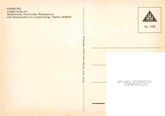 72916362 HAMBURG CITY Jungfernstieg mit Jacobikirche Petrikirche Rathausturm Alsterpavillon postalisch nicht gelaufen Erhaltung siehe scans [FriedD77] KatCode: 11110002000000