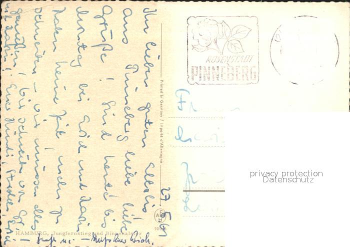 72245351 alte Postkarte HAMBURG CITY Jungfernstieg und Binnenalster postalisch gelaufen Erhaltung siehe scans KatCode: 11110002000000